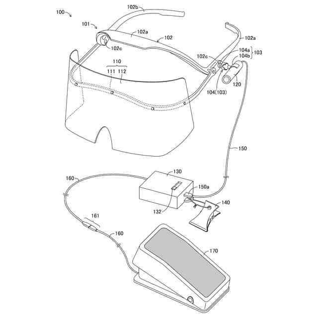【解決手段】レーザポインタ100は、頭部装着具101、レーザ光源120、機能部ボックス130、背部装着具140、第1配線150、第2配線160およびフットスイッチ170をそれぞれ備えて構成されている。頭部装着具101は、主として、装着具本体102、光源連結部103およびフェイスシールド部110をそれぞれ備えて構成されている。機能部ボックス130は、レーザ光源120に電力を供給するための機器であり、樹脂製の箱型の筐体内に電源部131および光源スイッチ132をそれぞれ備えて構成されている。レーザ光源120と機能部ボックス130とは、第1配線150を介して電気的に接続されており、機能部ボックス130とフットスイッチ170とは第2配線160を介して電気的に接続されている。