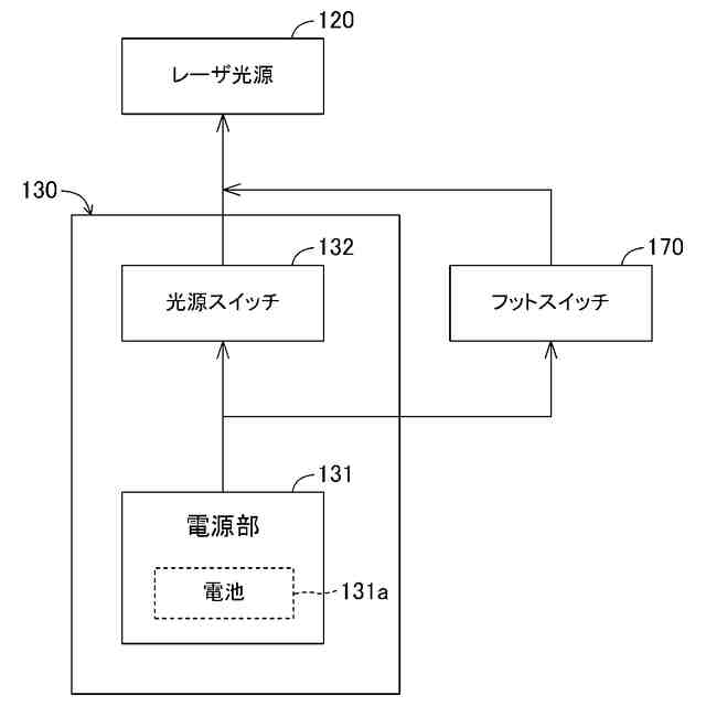 前記レーザ光源と前記フットスイッチとを電気的に接続するフットスイッチ用配線は、