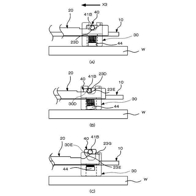 【解決手段】エンドエフェクタ1は、吸着部40の被押圧突起41Bを有する揺動部41に永久磁石43を支柱ボルトによって固定し、吸着部40揺動範囲を規制する揺動規制部30D及び吸着部40を傾斜状態から起立状態に戻す起立規制部30Eを有するガイド部30に吸着部40を揺動可能に設置し、変位部20の押圧傾斜23Eに被押圧突起41Bを押圧させて吸着部40を揺動規制部30Dまで傾斜させ、永久磁石43を傾斜離間させてから起立規制部30Eによって被吸着物から離間させる。