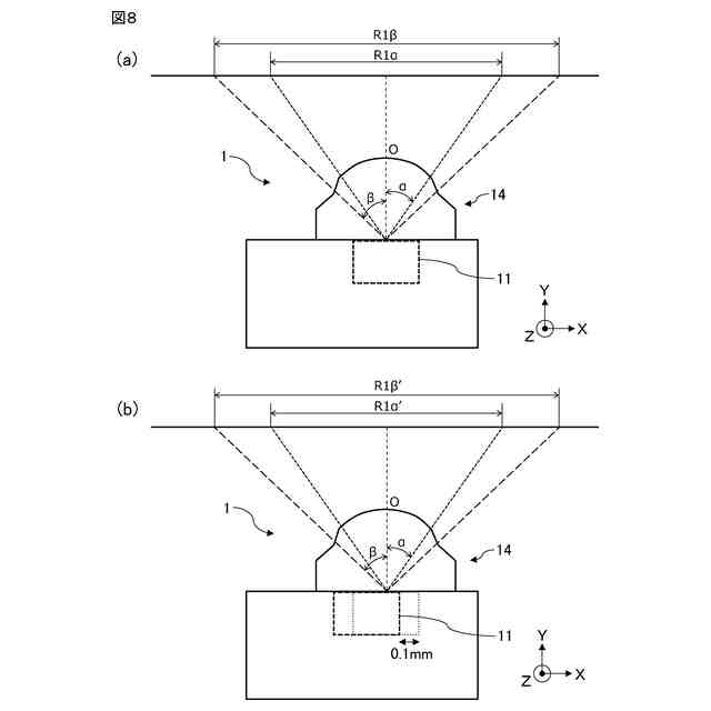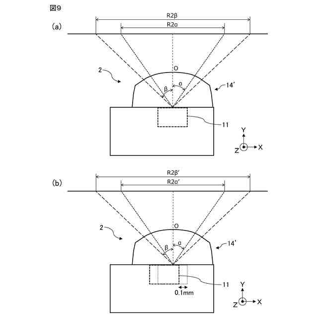 従来から、赤外線を発光する発光装置が知られている。例えば特許文献1には、赤外線を発光する発光装置において、レンズ成型時に金型からレンズを抜けやすくするため、レンズにテーパー部を設ける構成が開示されている。