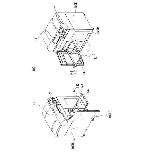 ペットボトル回収装置の前面左扉を開放している状態を示す図であり、ペットボトル回収装置の斜視図(左斜視図、右斜視図)である。