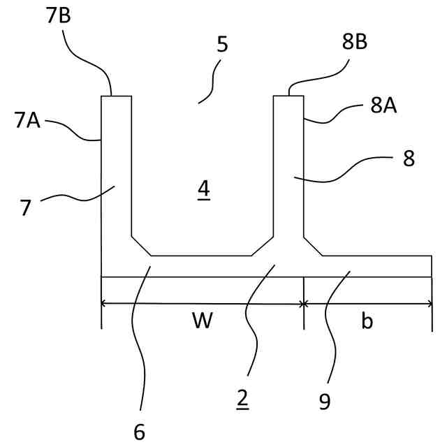 該底版の長辺の一端より上方に立ち上がる厚さがほぼ一定の側壁と、