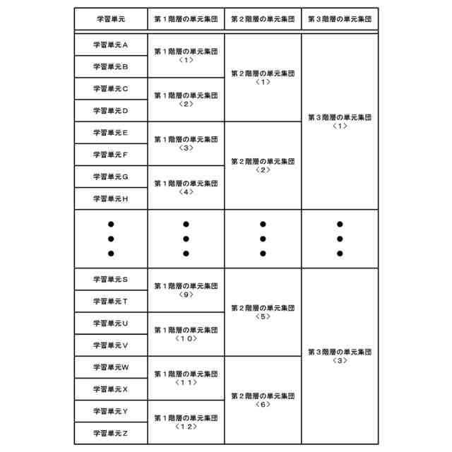 第2フェーズにおいて、複数の前記第1階層の単元集団に含まれる前記学習単元の集まりとして構成される第2階層の単元集団に含まれる学習単元に関して前記第1フェーズにおいて出力した前記演習問題を出力し、