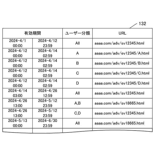 アクセス先データベースの内容の例を示す図表である。
