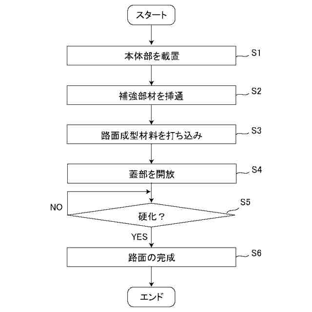 このような構成によれば、一枚岩ではなく、単位空間ごとに区切られた路面が成型されることとなるので、路面がひずみにくくなり、ひび割れもしにくくなる。