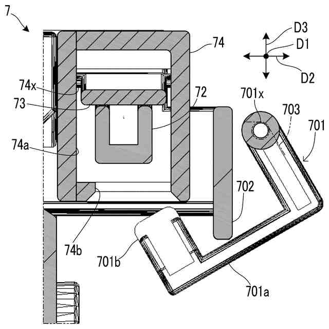 前記可動ユニットに支持され、前記可動ユニットが前記基準位置に位置するときに前記第1端子と接触し、前記可動ユニットが前記離隔位置に位置するときに前記第1端子から離れる第2端子と、