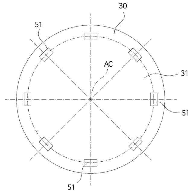 前記第1の磁性体のそれぞれは、前記第1の平坦面において前記回転軸からの径方向での離間距離が略同一となるように、その周方向に亘って略等間隔に配設される、