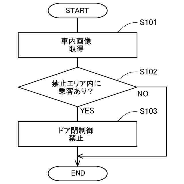 また、車両における車内のドア付近に乗客が存在している状態でドアの閉制御が実行された場合、乗客がドアに挟みこまれる可能性がある。このような、車両のドアによる乗客の挟み込みが発生することを抑制するために、車両の車内におけるドア付近に所定のエリアが設定されている場合がある。所定のエリアは、その内側に乗客が存在することが検知された場合はドアの閉制御が禁止されるエリアとして設定される。このような所定のエリアが設定されている車両においては、ドアが開状態のときに所定のエリア内に乗客が存在することが検知された場合は、ドアの閉制御が禁止される。ドアの閉制御が禁止されると、ドライバによって閉ボタンが押下されても、通常はドアの閉制御が実行されない。