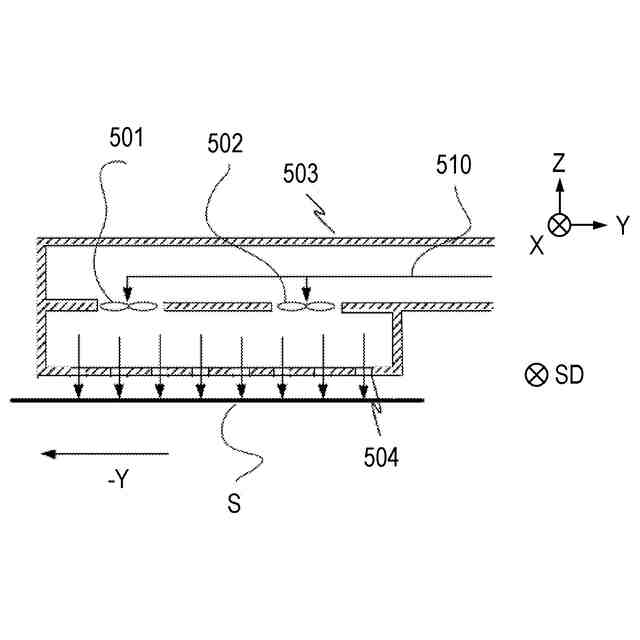 特許文献1には、枚葉印刷を行う印刷機において、乾燥部の熱風が周囲の装置に与える影響を抑えるために、熱風を放射するノズルと、温風を放射するノズルの2種類のノズルを乾燥部に設けた構成が開示されている。この構成においては、温風が熱風を押し戻し、熱風の拡散を封じ込むためのエアカーテンとして機能する。