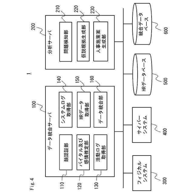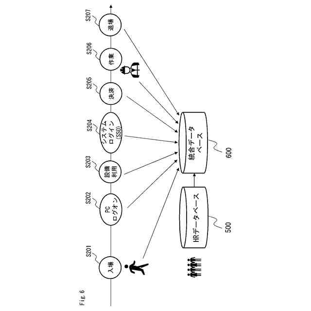 前記人物のログ情報と前記人物の人的資源情報とを紐づけた統合データを格納し、
