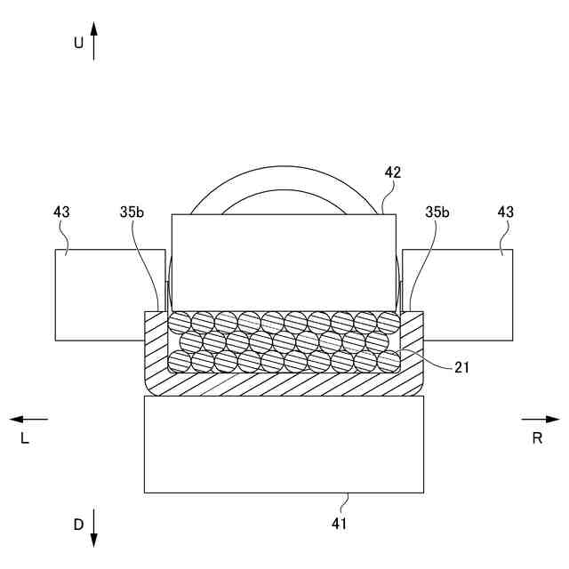 超音波溶着は、端子金具が備える電線接続部に電線の芯線が重ねられ、これをアンビルとホーンとで挟み込んで加圧した状態で、振動子よってホーンに超音波振動が付与されることで行われ、当該超音波振動により生じた熱の作用によって、電線接続部と芯線とが溶着される。このとき、電線の長手方向に振動方向(振幅)が沿うように超音波振動が付与される。