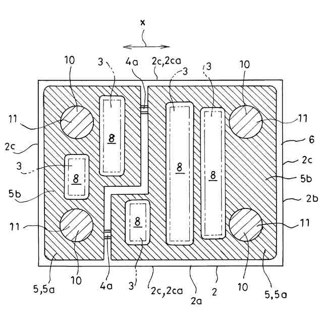 前記封止体は、前記機能面の長さ方向に沿った2つの辺間に亘る仮想の線分に基づくようにして前記長さ方向において分割された2以上の封止部分の集合体となっていると共に、