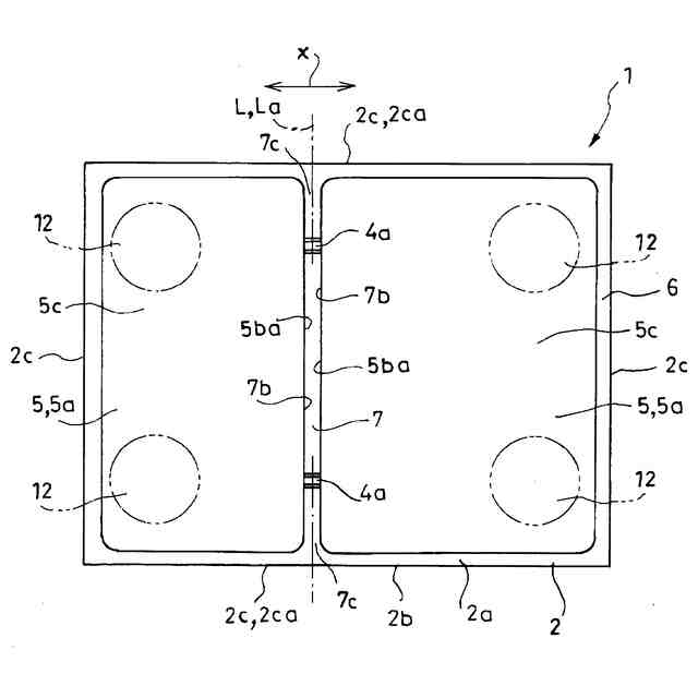 前記仮想の線分を挟んで隣り合う前記封止部分の前記ウォール体間に前記仮想の線分に倣った溝状隙間を形成させて隣り合う前記封止部分の前記ウォール体同士を非接触とさせてなる、ものとした。