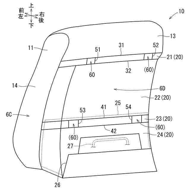 シートバックを前側から見た斜視図である。
