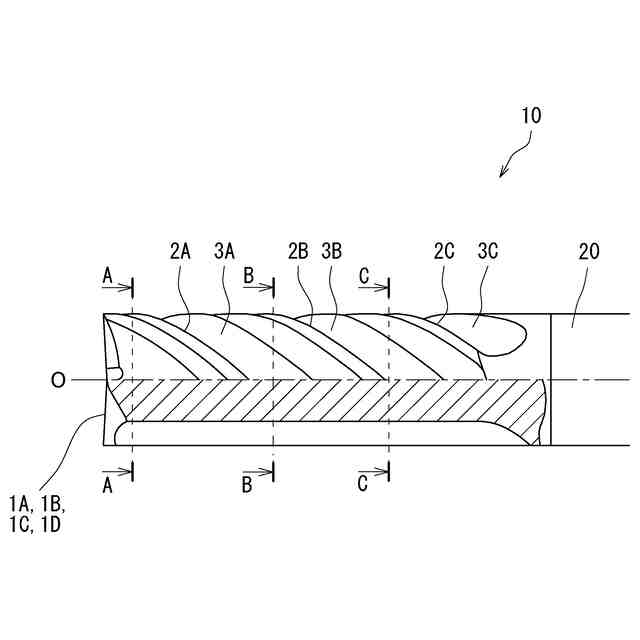 図1に示すエンドミル10のC-C線断面図である。