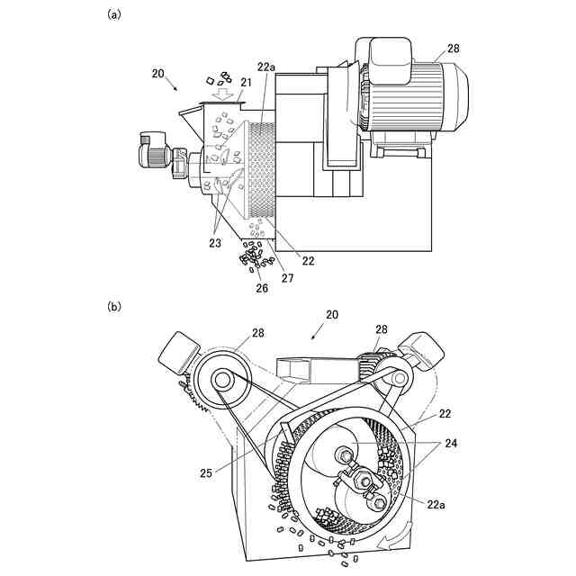 木質バイオマスで形成されたペレット(木質バイオマスペレット)は脆いものが多いため、運搬時等においてペレット同士がぶつかり合う等により多くの木屑が発生する。そこで、発生した木屑(木質バイオマス)を再利用するために、再造粒設備が導入されている。