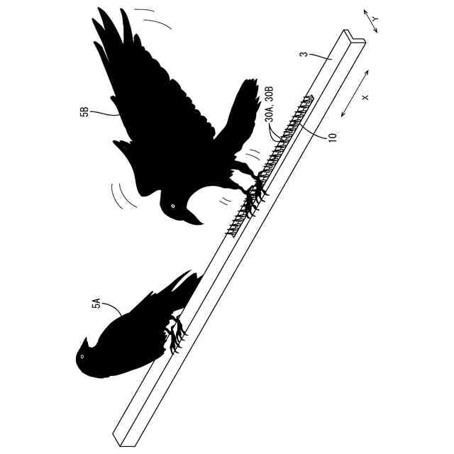 本発明によれば、構造物に飛来した鳥類の足裏を刺激して嫌悪感を誘うことで、構造物に鳥類が留まることを抑制することができる。これにより、鳥類の糞による短絡故障、鳥類本体の感電による電力供給支障、あるいは、鳥類の鳴き声による騒音を解消することができる。