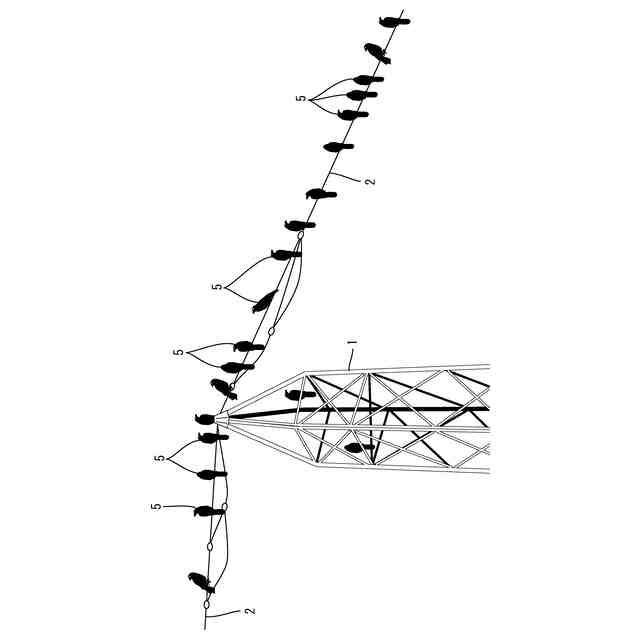図1に示すように、鉄塔1や架空地線2などの送電設備等の構造物に対して、カラス、カワウ、アオサギ等の鳥類5が飛来することがある。従来から、こうした鳥類の糞による短絡故障、鳥類本体の感電による電力供給支障、あるいは鳥類の鳴き声による騒音が問題となっている。鳥害を防止する技術を開示する文献として、例えば、下記の特許文献1がある。