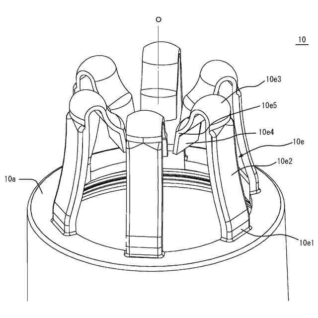 前記ヘッド及び前記キャップの何れか他方は、ベース部と、該ベース部につながっていて該ヘッドを該キャップに向けて前進させた際に前記延出部によって前記ステムの中心軸線から離れる向きに撓む弾性片を有し、
