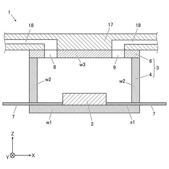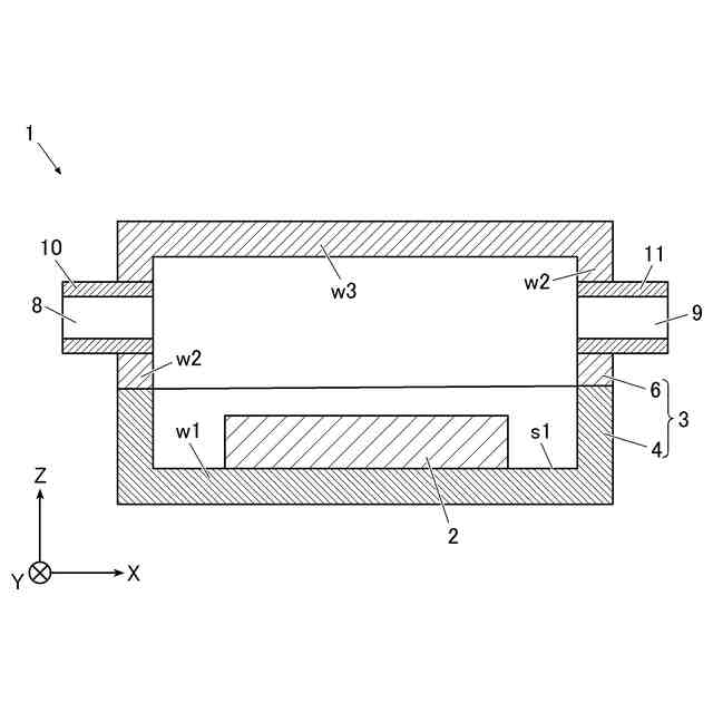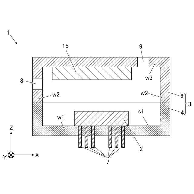 前記箱体は、前記第1電子部品が搭載される容器体と、前記第1電子部品を覆う蓋体と、を有し、