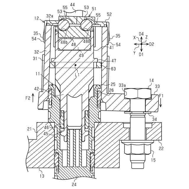 前記コネクタは、前記第1方向に沿った前記ボルトの軸力を前記コネクタ本体に伝達する第1伝達部を備え、