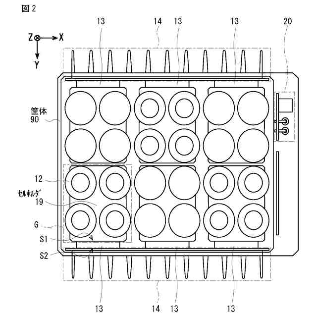 図1,2は、一実施の形態に係る電池パック(電池パック1)の一構成例を表すものである。図1では、電池パック1は、充電器100に接続されている。電池パック1は、蓄電池11と、6つのペルチェ素子13(ペルチェ素子13A~13F)と、ヒートシンク14と、温度センサ15と、監視回路16と、保護回路20とを備えている。蓄電池11、6つのペルチェ素子13、温度センサ15、監視回路16、および保護回路20は、筐体90(図2)の内部に収容されている。