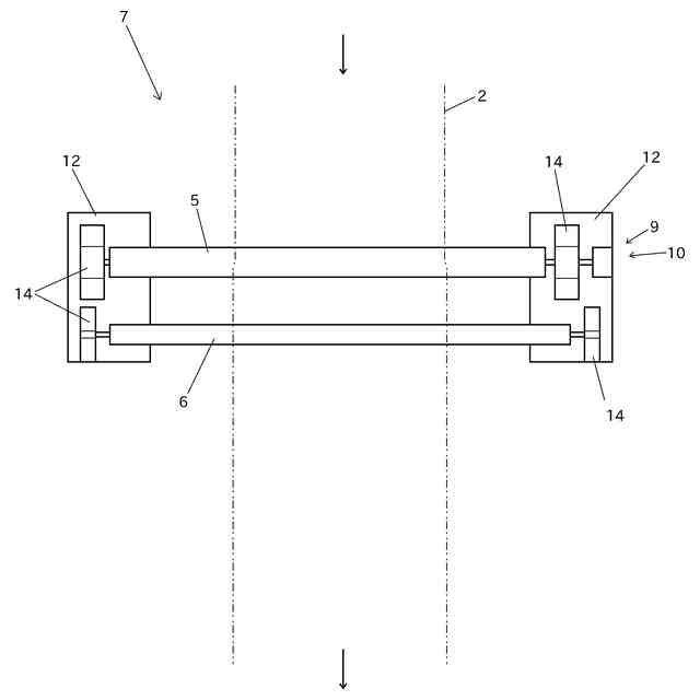 また一方、このように基材が蛇行しようとすることを補正するために、抱き角をもって支承してその軸方向を前記基材幅方向に対してやや傾斜させるように調整することでこの基材の蛇行を補正する蛇行補正ロールを設けることも行われている。