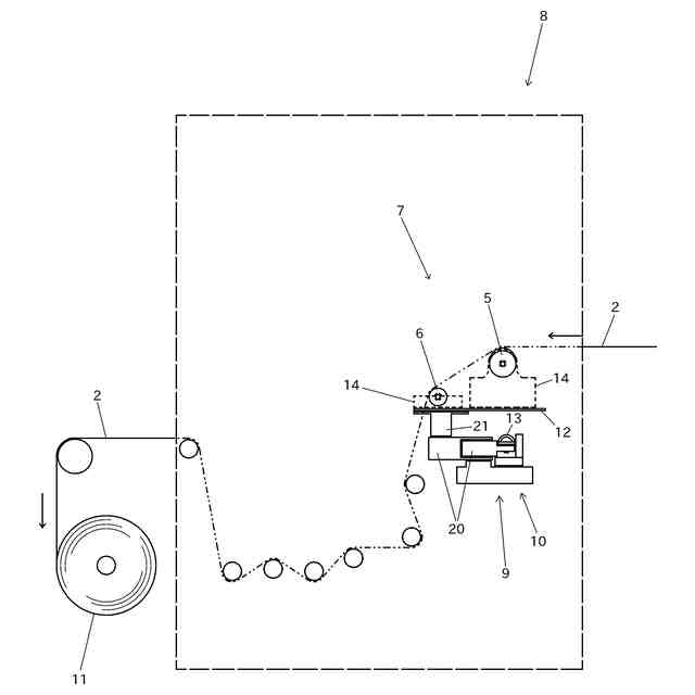 塗工装置に設ける乾燥装置は、塗工装置により塗工液が表面に塗工されこの塗工装置から送出されるフィルム状の基材を搬送通過させて、たとえば熱風やヒーター加熱によりこの基材表面の塗工膜(塗工面)を乾燥するものである。