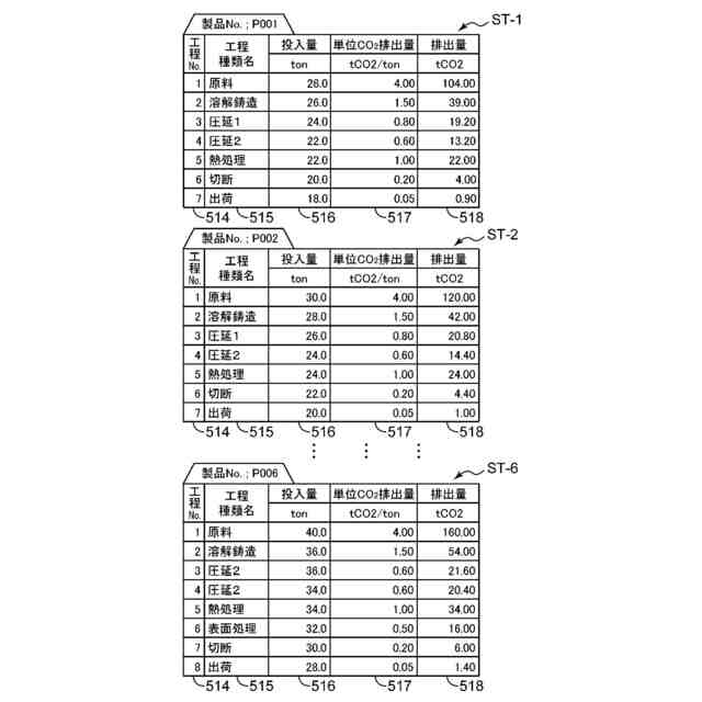 排出量を求めるシステムであって、前記複数の工程は、原料を前記工程の1つとみなして含み、前記製品ごとに、当該製品を製造する際に経る複数の工程それぞれにおける各第1ロス物排出量を求める。この演算において、当該製品を製造する際に経る複数の工程それぞれについて、当該製品の当該工程の投入量と当該製品の製品量との差分量が当該製品の当該工程の第1差分量として求められ、当該製品の当該工程のCO