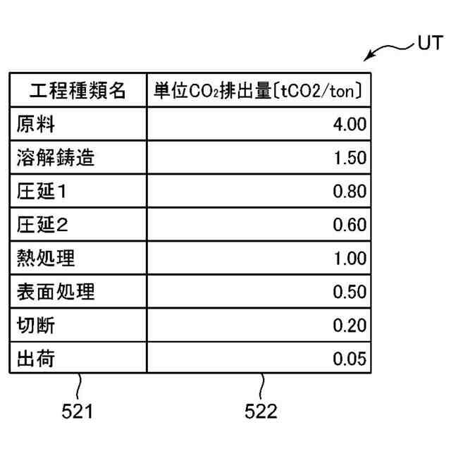 このような二酸化炭素排出量演算システムは、工程種類ごとに、所定の期間におけるCO