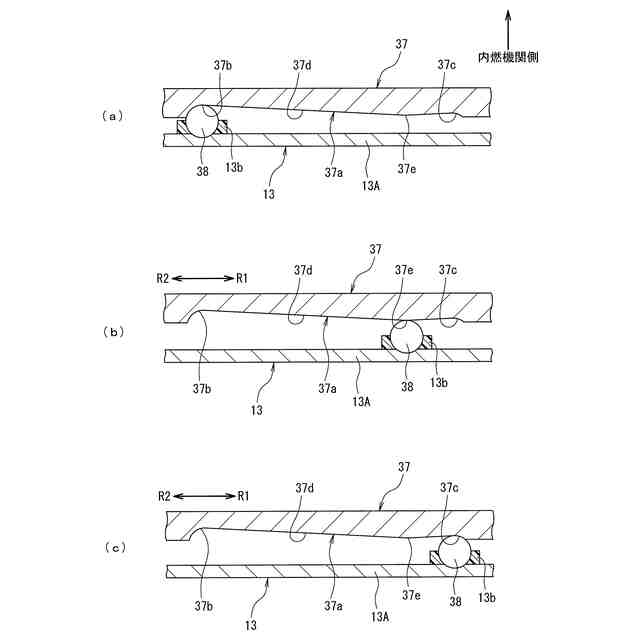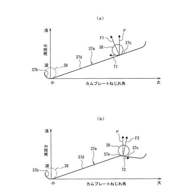 前記カム溝は、前記カムプレートの回動方向に沿って延在し、前記クラッチの回転中心軸方向の深さが前記内燃機関の回転方向の上流端部から下流端部に向かって浅く形成されるカム面を有し、