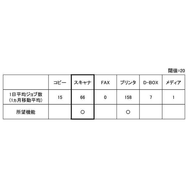 本発明の一実施形態に係る情報処理装置における機能使用情報の例を示す図である。
