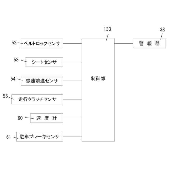 請求項4の発明は、走行速度センサ60が極低速ではシートベルト33を締めないでも警報器38を作動させないことを特徴とする請求項1に記載の乗用作業車の操縦装置とする。
