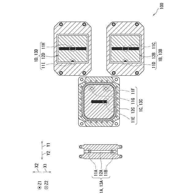 前記第五コールドプレート及び前記第八コールドプレートは、第三方向に距離を隔てて位置し、