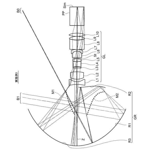 前記第1反射面上における光線の反射点のうち、光軸からの距離が最長となる反射点と光軸との距離をRM1、