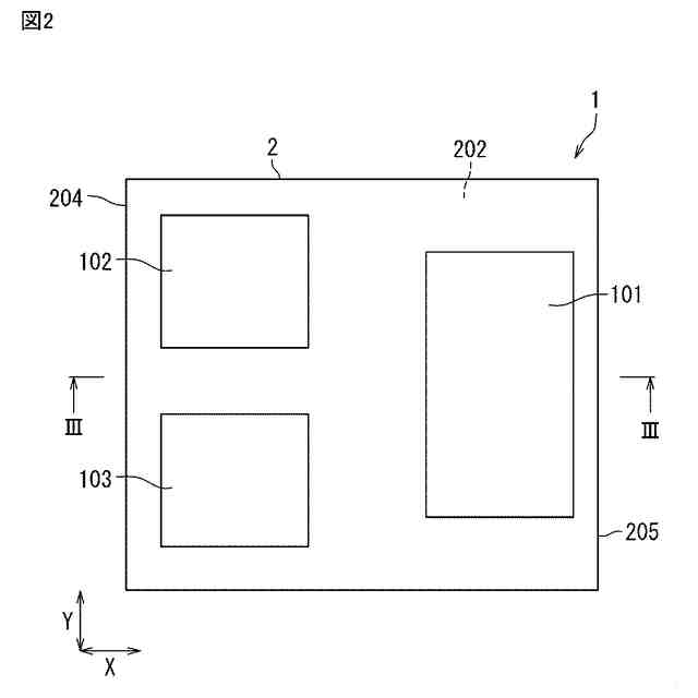 図1のインダクタ部品の第3の変形例を示す平面模式図。