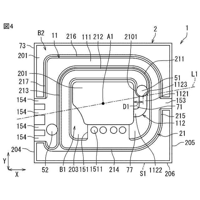 前記第1本体部から、前記第2方向でかつ前記第1旋回軸から離れる方向、または、前記第2方向でかつ前記第1旋回軸に接近する方向に延びる引き出し部と