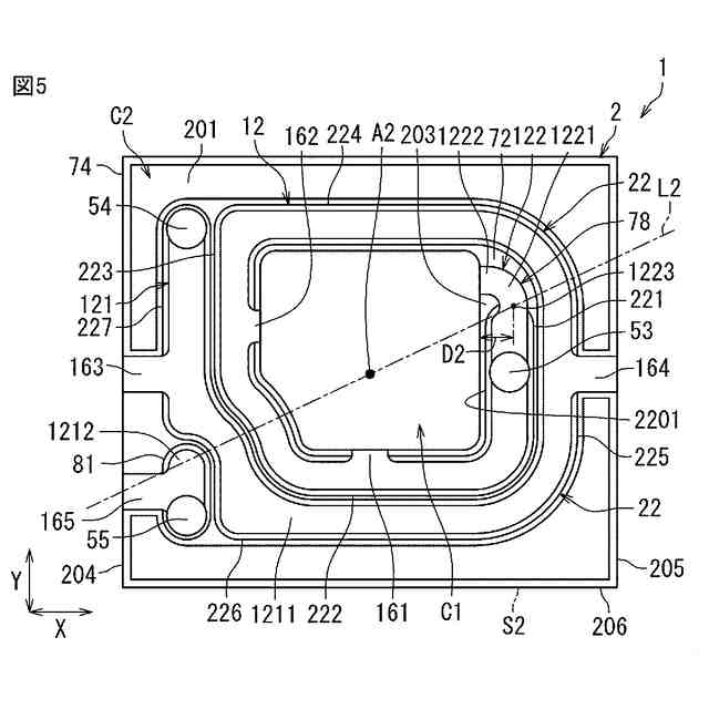 前記第2導体層上に設けられ、前記第1方向において、前記第2導体層に対して前記第1導体層とは反対側に位置すると共に、前記第1方向に沿った第2旋回軸まわりに延在する第2インダクタ配線と