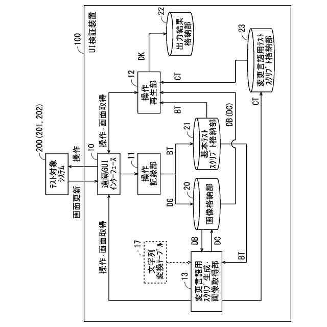 したがって、本開示のUI検証装置のユーザは、変更言語用テストスクリプト及び変更UI部品画像を自動的に得た後、操作再生部に変更再生処理を実行させることができる。この変更再生処理が、変更言語に設定されたテスト対象システムに対する一連のテスト処理をとなる。