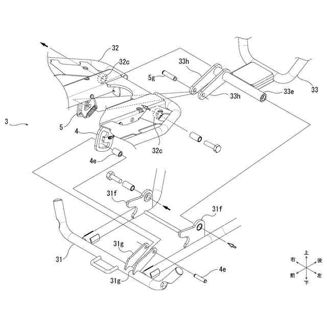 シート部3の座部32のチルト機構4とリクライニング機構5の組立説明図
