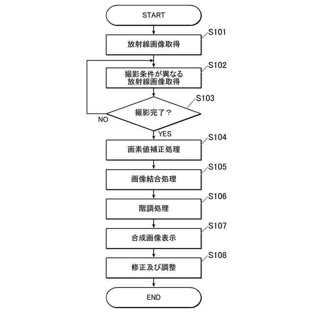 当該方法においては、放射線を複数回被写体に曝射する必要がある。そのため、被写体に健康上の悪影響が生じるおそれがある。そこで、例えば特許文献1及び2には、画像撮影の度に撮影条件を変更することで曝射の影響を抑えて、画像合成時に各画像の画素値を自動で補正する方法が記載されている。