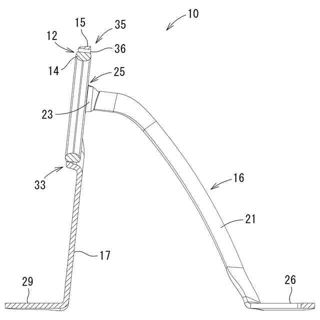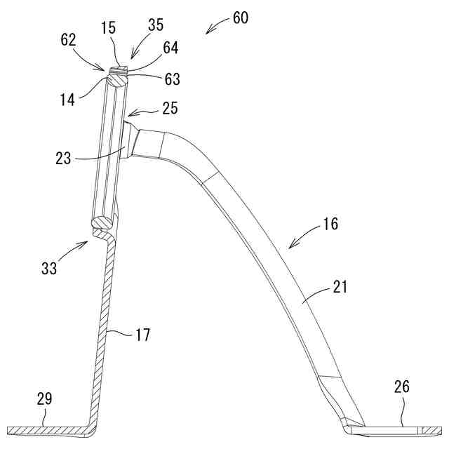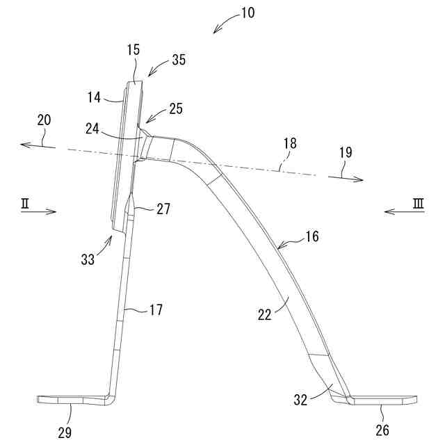 本明細書において「ダブルフット形」とは、ガイドリングを保持するガイドフレームが、ガイドリングの中心軸に沿う方向に並設された一対の支持脚を有する構造をいう。なお、少なくともいずれか一方の支持脚がガイドリングの径方向に沿って隔てられた一対の脚片を備えている場合も含めて、「ダブルフット形」という。