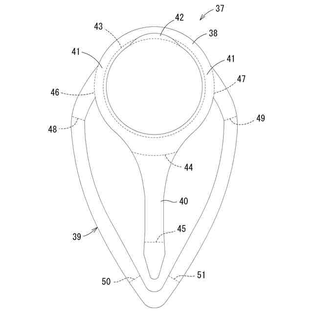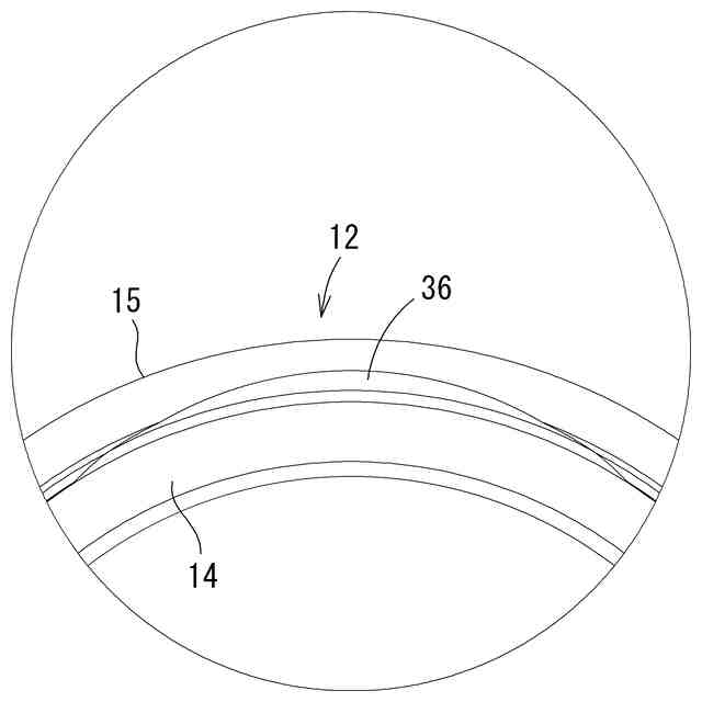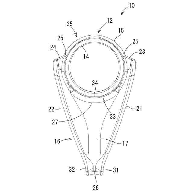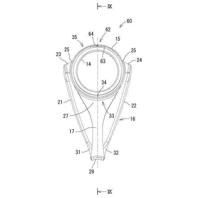 (2) 本件発明の第1側面にしたがう第2側面の釣糸ガイドにおいては、前記緩衝部は、前記第2領域における前記フレームと前記ガイドリングとの間に形成された空隙からなる。