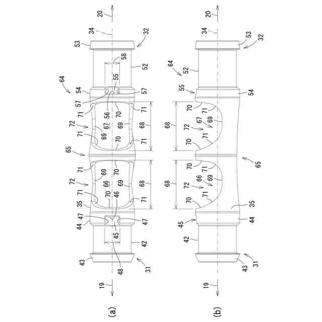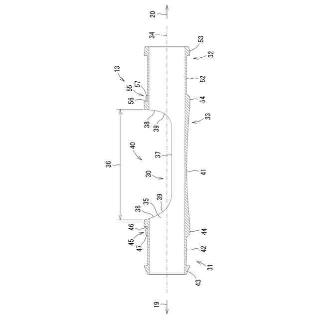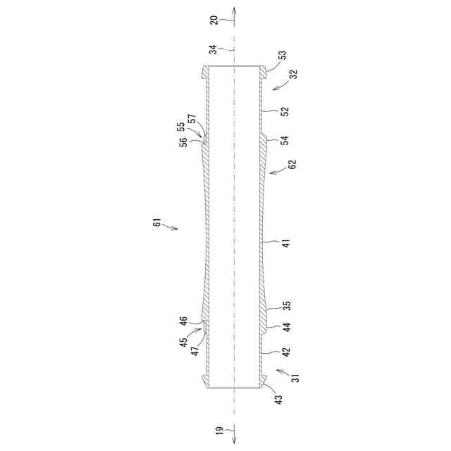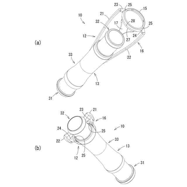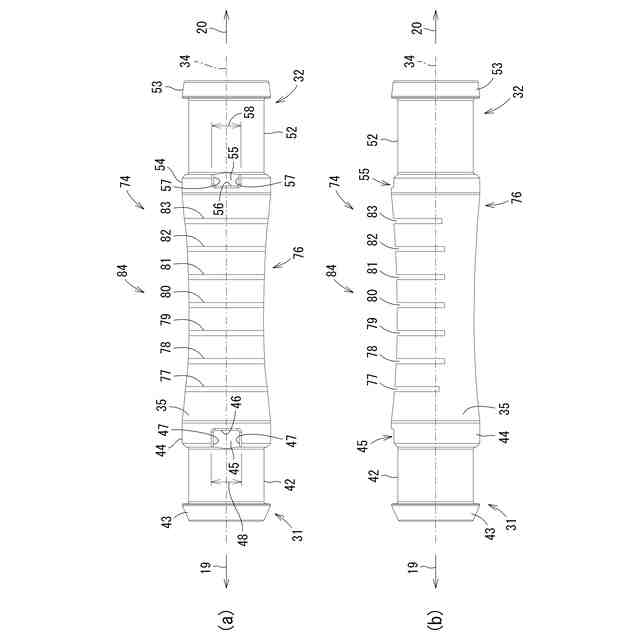 前記第1管部および前記第2管部のうち少なくともいずれか一方より曲げ剛性が低い低剛性部を有し、前記第1管部および前記第2管部を連結する連結部と、