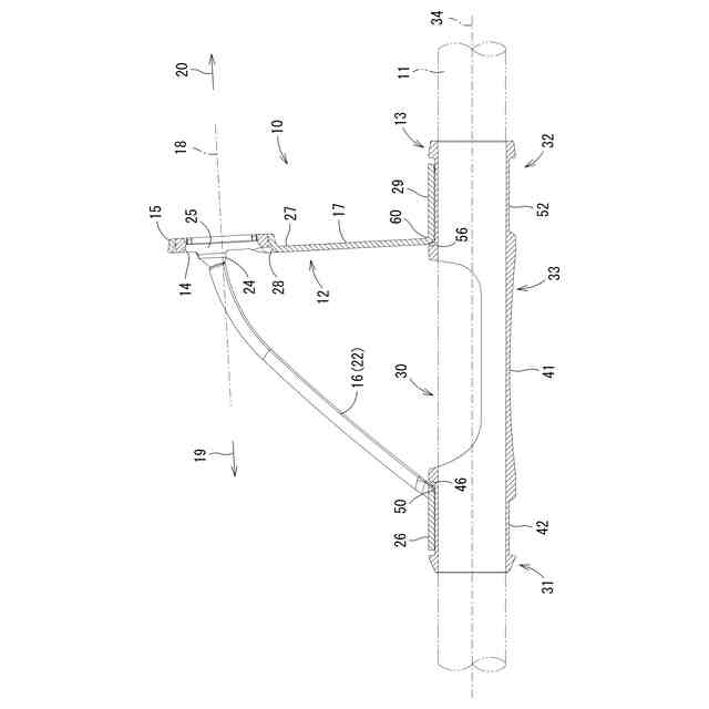 しかしながら、嵌合部材の外形や肉厚が大きくなれば、釣糸ガイドの重量が増加することに加えて、高剛性の嵌合部材がブランクに嵌合することにより、いわゆる釣竿の調子に悪影響を及ぼす。特に、ガイドリングの中心軸に沿う方向に長くなるダブルフット形の釣糸ガイドでは、釣竿の調子への影響はより顕著となる。