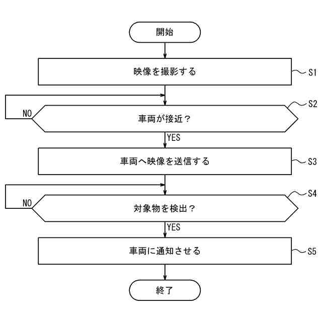 【解決手段】路側装置(10)は、周囲の映像を撮影する撮影部(14)と、他の装置と通信するための通信部(13)と、制御部(11)と、を備える。制御部(11)は、撮影部(14)により撮影された映像を、路側装置(10)に接近中の車両(20)へ通信部(13)により送信して、車両(20)の出力部(25)の表示装置に表示させる。