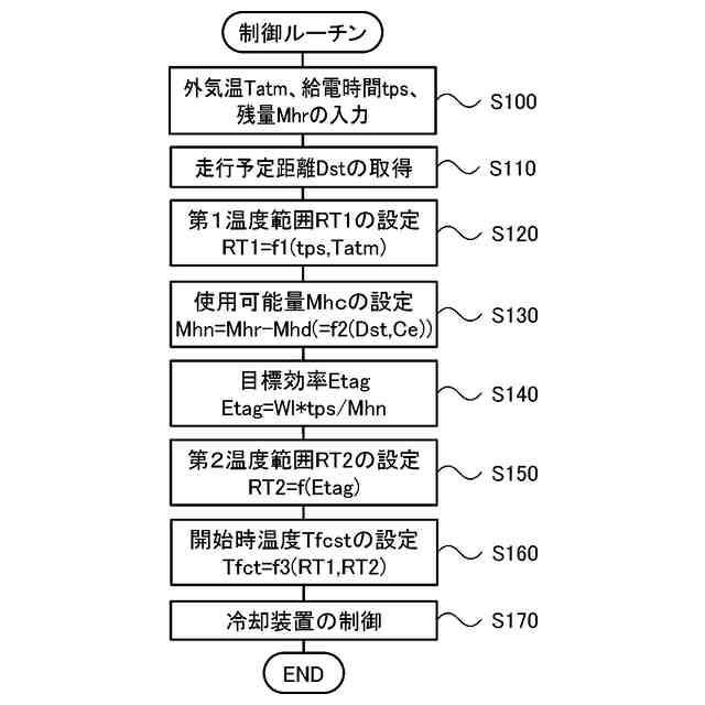 前記制御装置は、前記第1温度範囲が前記第2温度範囲に含まれないときには、前記開始時温度を前記第2温度範囲に含まれる温度とする