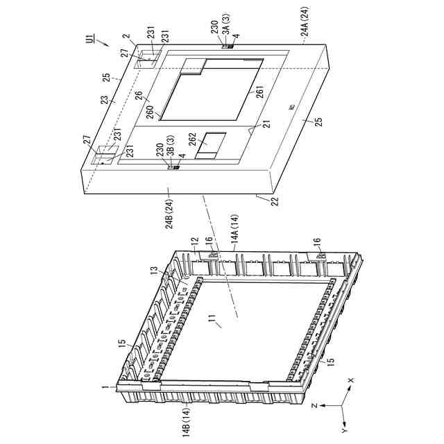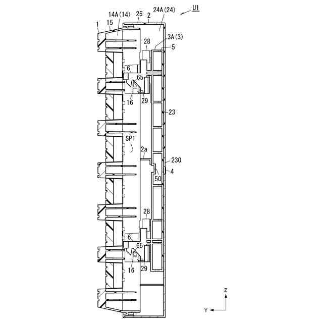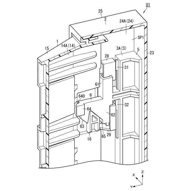 また、各図面においてX軸方向を左右方向、Y軸方向を前後方向(奥行き方向)、Z軸方向を上下方向と規定する。さらに、X軸方向の正の向きを右、Y軸方向の正の向きを後ろ、Z軸方向の正の向きを上と規定する。ただし、これらの方向は一例であり、キャビネットU1及び分電盤U10の使用時の方向を限定する趣旨ではない。また、図面中の各方向を示す矢印は説明のために表記しているに過ぎず、実体を伴わない。