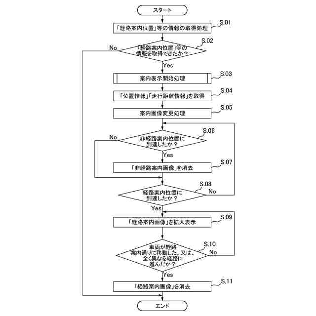 前記制御手段は、前記車両が前記非経路案内位置を通過した場合に、前記非経路案内位置に重畳表示されていた前記非経路案内画像を消去させること