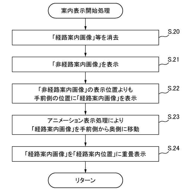 前記非経路案内画像を表示した後、前記非経路案内画像の手前側から奥側に移動したように経路案内画像を表示させる制御部を備えること
